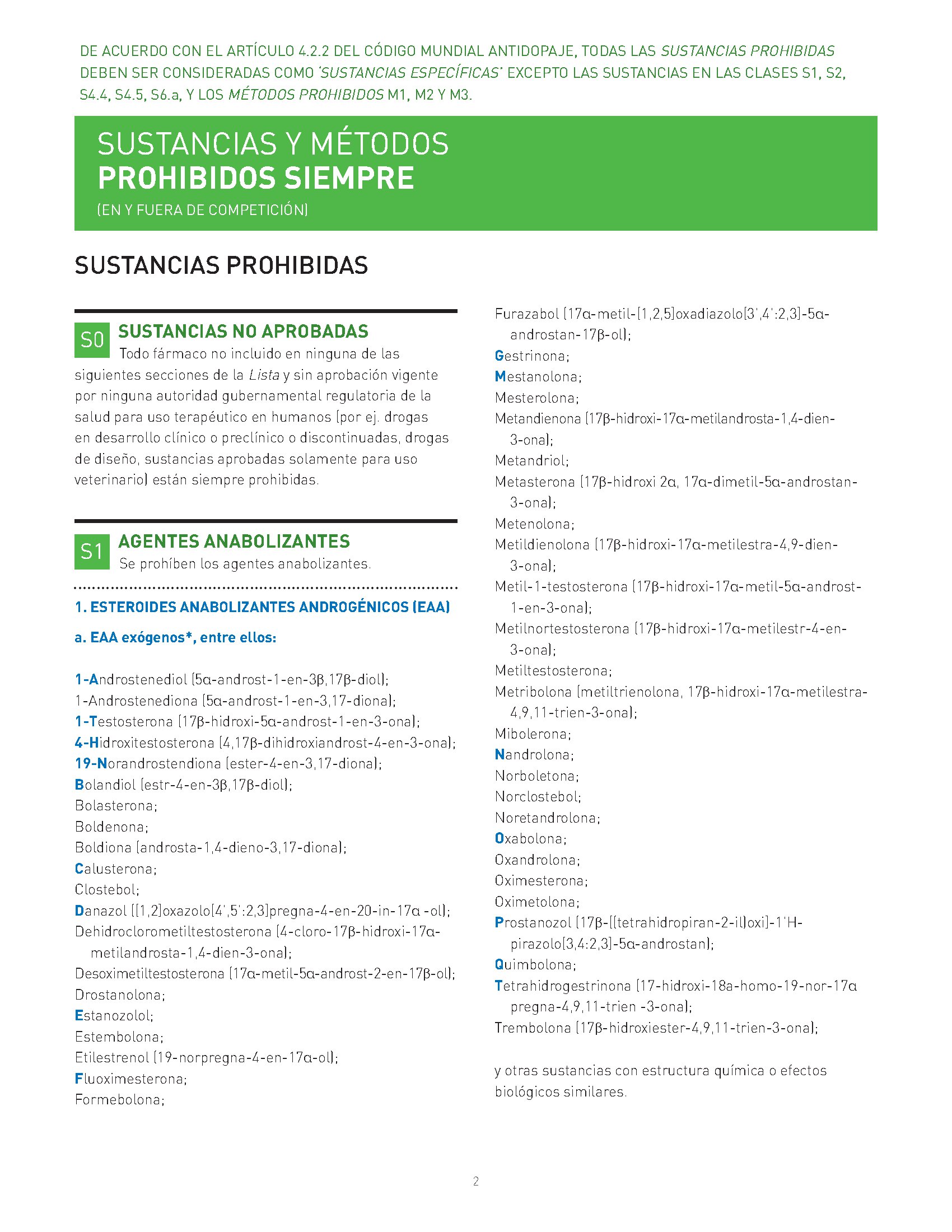 La Secretaría de Deporte de la Nación, dependiente del Ministerio de Desarrollo Social, envió un comunicado con las sustancias que la WADA, la Agencia Mundial Antidopaje determinó para este año en curso, 2016, cuáles son las sustancias prohibidas para hacer deporte.