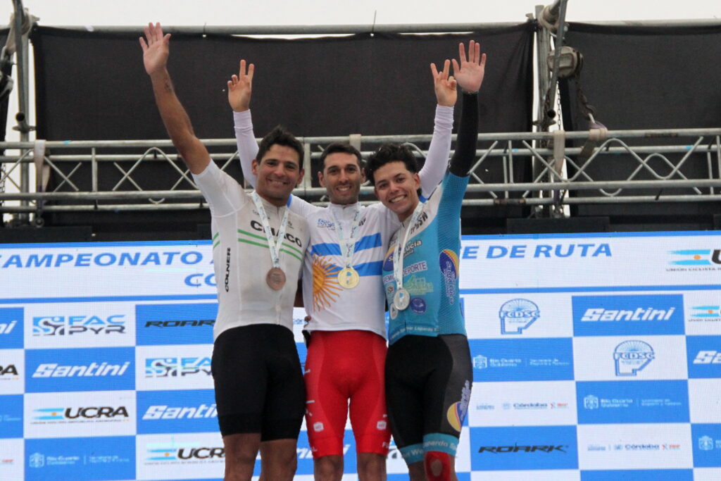 El podio lo completaron Mauricio Domínguez, que sumó una medalla de plata en el debut de los equipos privados dentro del pelotón del certamen nacional y el chaqueño Daniel Juárez, que completó una gran carrera y muchísimos kilómetros en fuga.