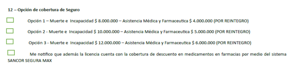 Se podrá elegir por La OPCIÓN Seguro 1 – hasta el 30 de Marzo de 2026, las licencias gestionadas y abonadas posterior a esa fecha deberán optar por Seguro 2 o Seguro 3.-